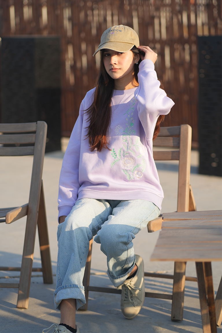 Lilac Embroided Sweatshirt