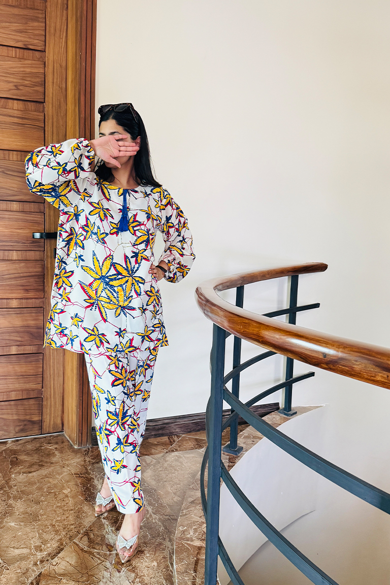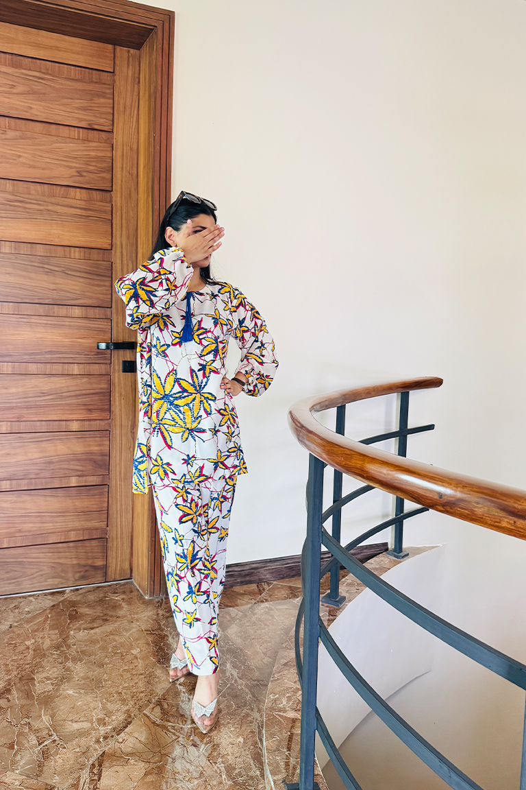 Brighten up your wardrobe with our Sun-Kissed Petals Co-ord Set, a perfect blend of comfort and style. Designed with a vibrant floral print, this two-piece outfit brings a refreshing and trendy look for any occasion.
