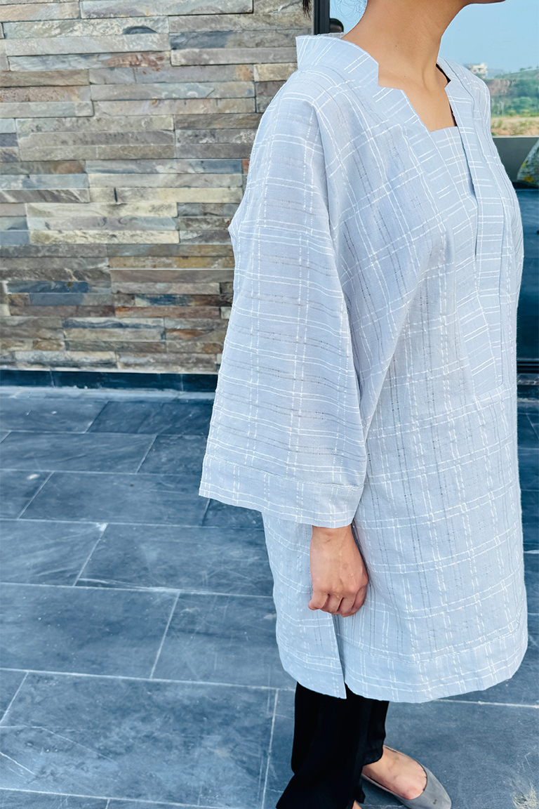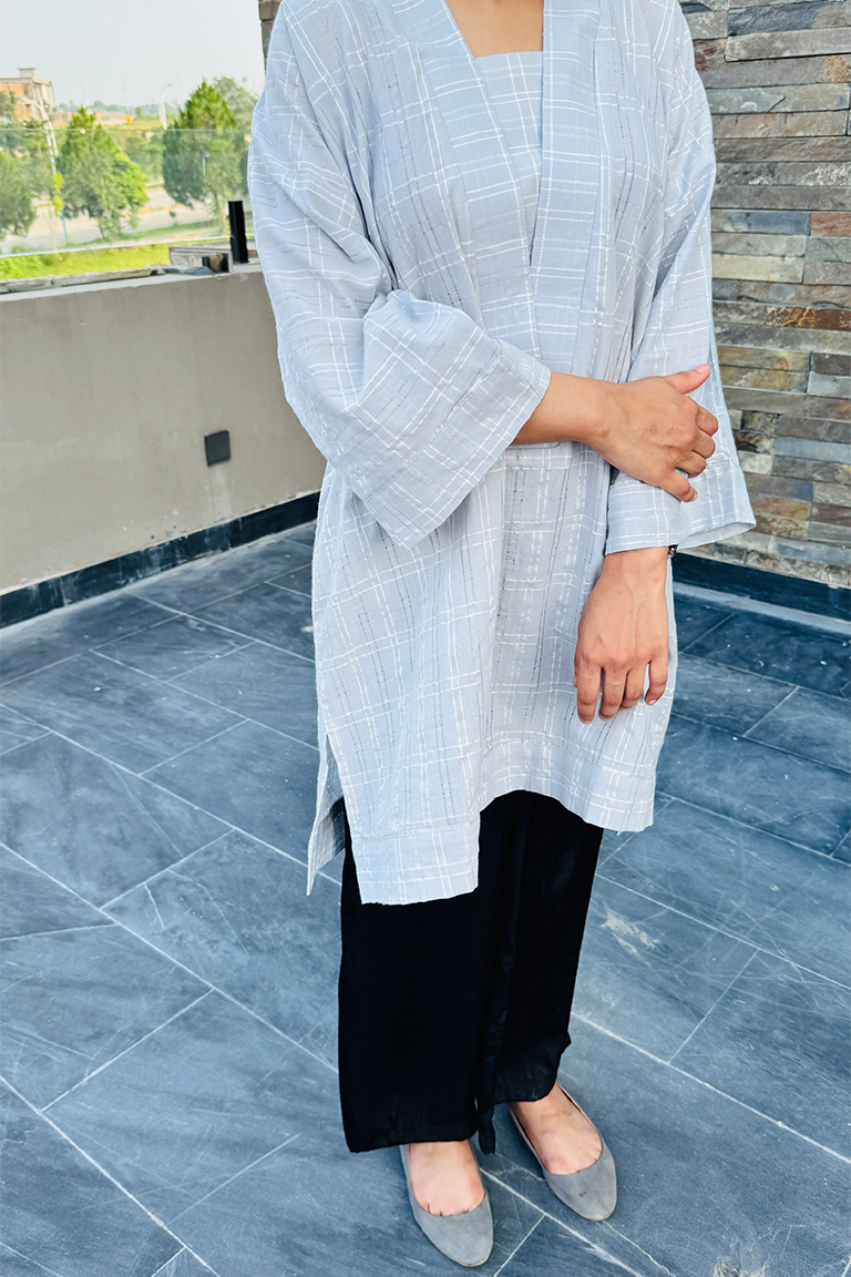 Elevate your everyday elegance with our “kimono kurta” – A timeless blend of simplicity and sophistication. Crafted from premium fabric in a soft grey-silver tone, this piece features subtle textured lines and a relaxed silhouette that flatters all body types. Kimono sleeves and minimalistic neckline add a modern touch, making it perfect for both casual days and graceful evenings.